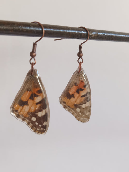 Handmade with care, no two pairs are exactly alike, making each set a one-of-a-kind statement piece. Our sourcing process respects nature, ensuring no harm is done to living creatures. Our butterfly wing earrings feature only ethically sourced specimens—naturally found or carefully preserved from a 30-year-old thrifted collection. While these older wings may not have been found dead, repurposing them allows their beauty to endure in a way that aligns with our values of sustainability and respect for nature.
