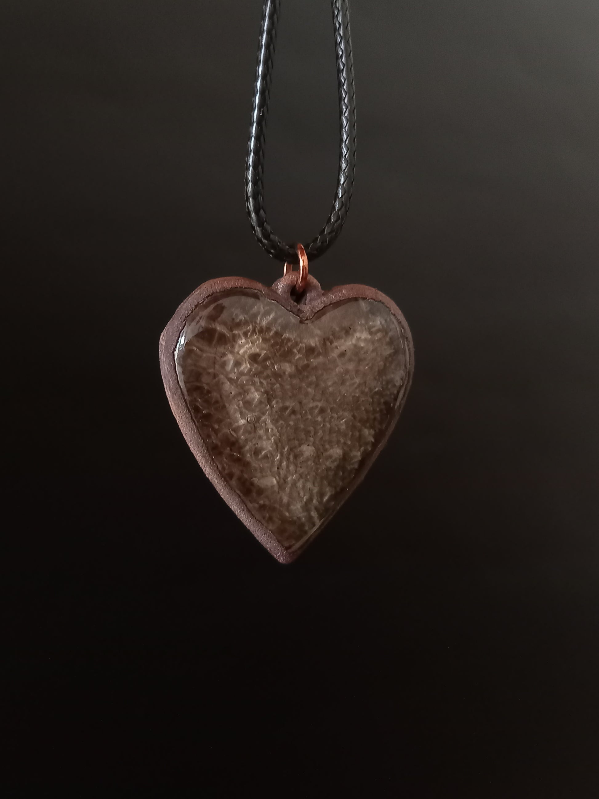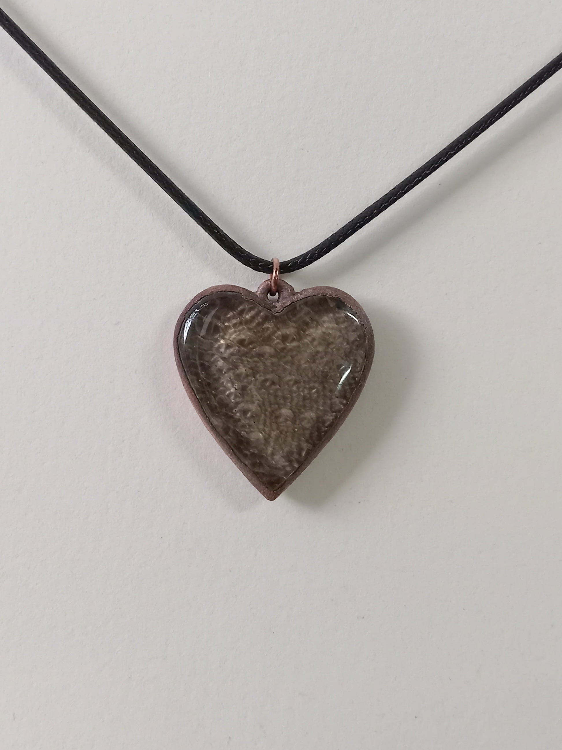 A one-of-a-kind pendant featuring real bearded dragon skin, carefully preserved and encased in resin. The piece is set in a handcrafted copper base, giving it a warm, earthy finish.