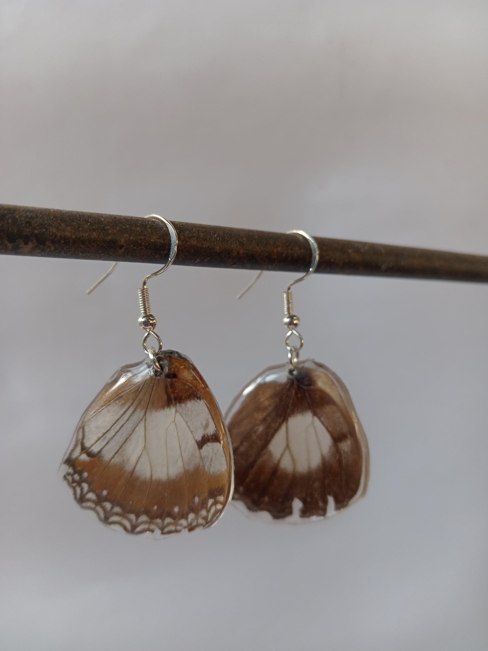 Delicate butterfly wings, ethically sourced and carefully preserved in clear resin, have been transformed into wearable art. The resin preserves and highlights the intricate colors and patterns of the wings, making nature’s intricate details visible up close.