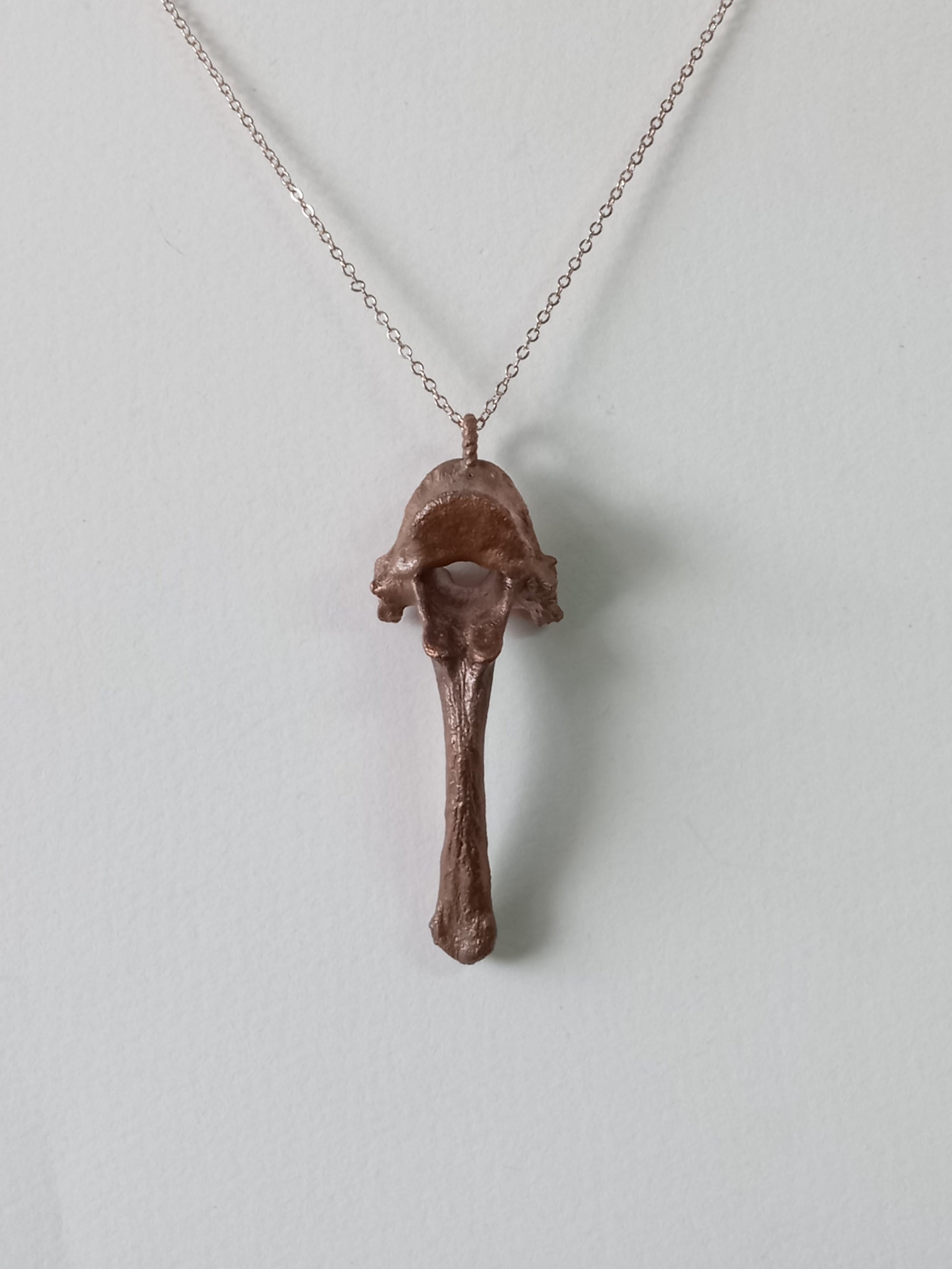 A real canine vertebra, preserved forever through the art of copper electroforming. The natural ridges and curves of the bone are captured in striking detail, transforming a fragile remnant into a lasting piece of wearable art.