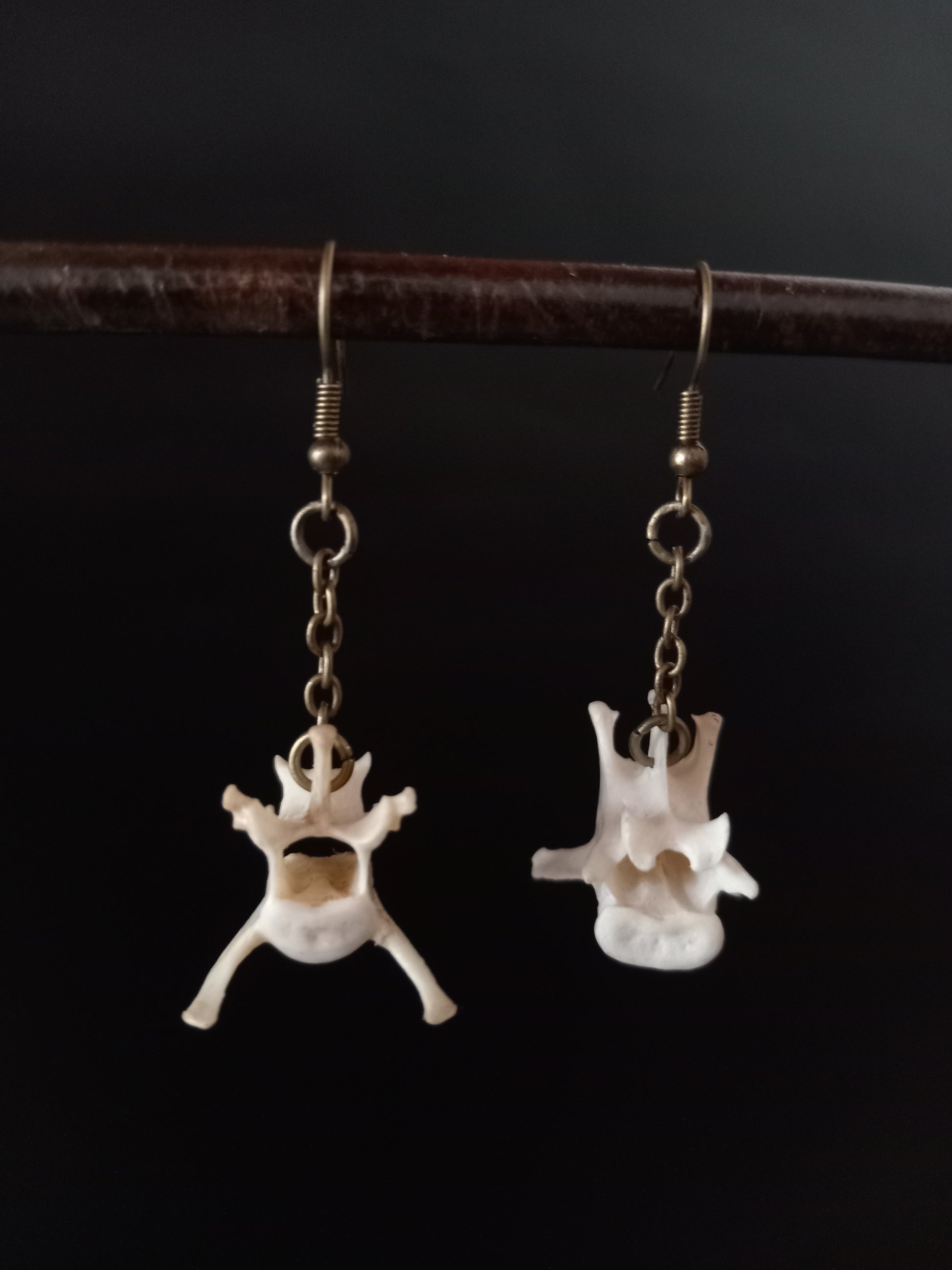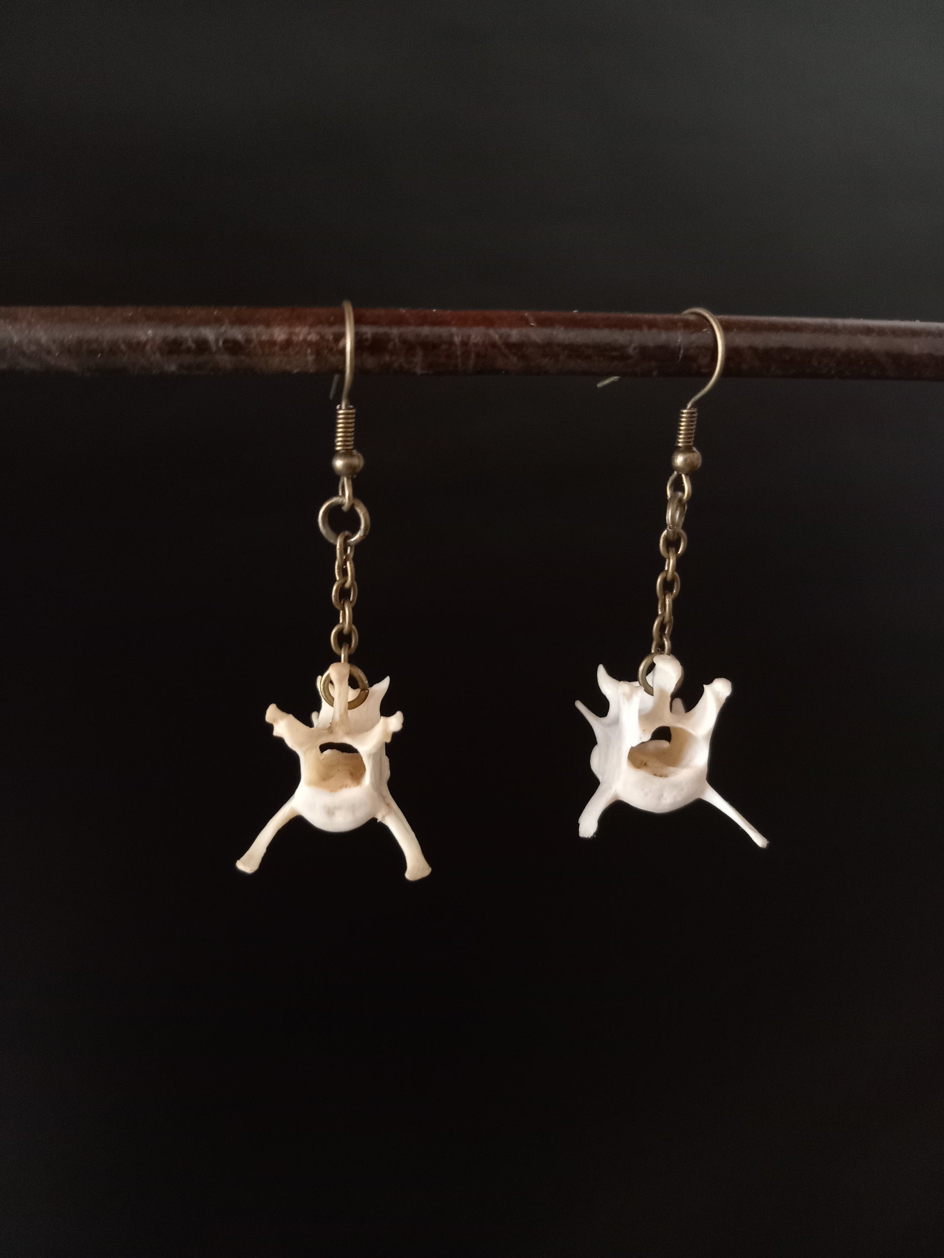 A unique pair of earrings made from real cat bones — cleaned, sealed, and crafted into striking natural jewelry. Perfect for those who love bold, nature-inspired designs.