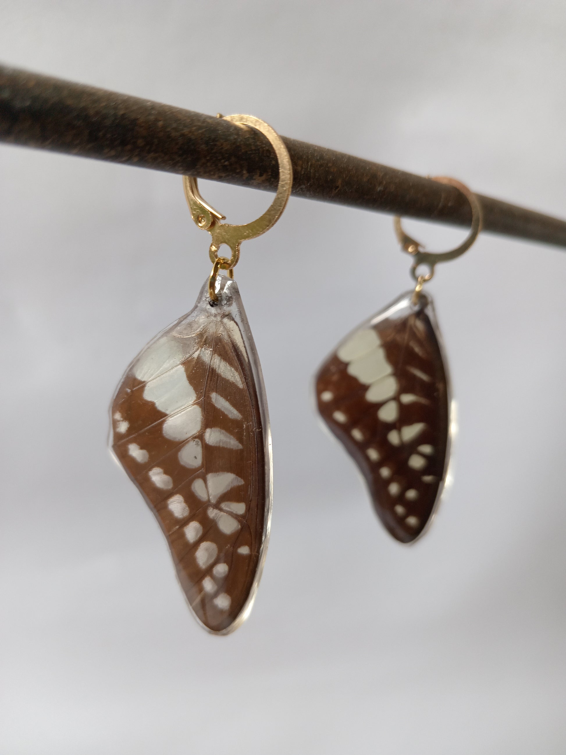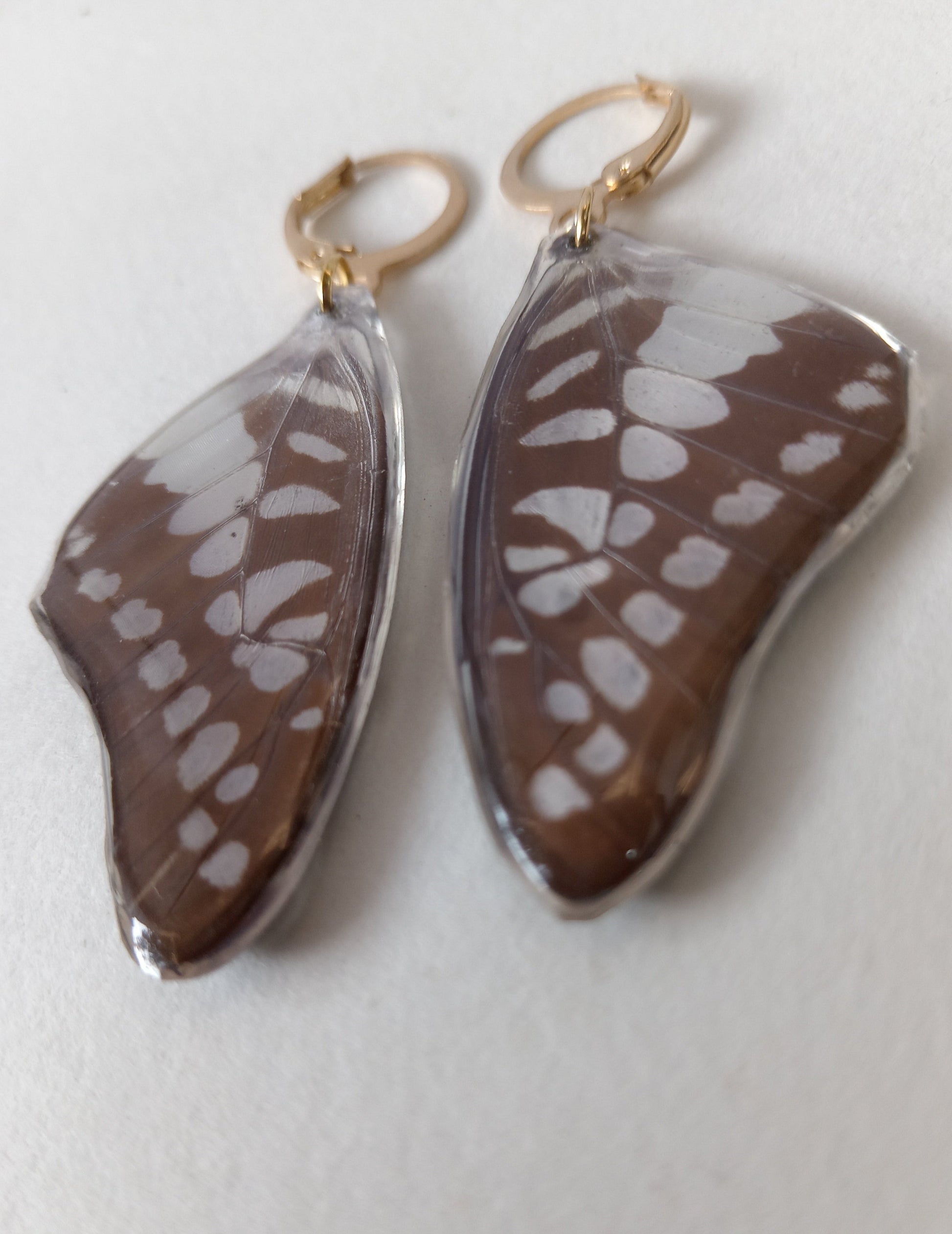 Delicate butterfly wings, ethically sourced and carefully preserved in clear resin, have been transformed into wearable art. The resin preserves and highlights the intricate colors and patterns of the wings, making nature’s intricate details visible up close.