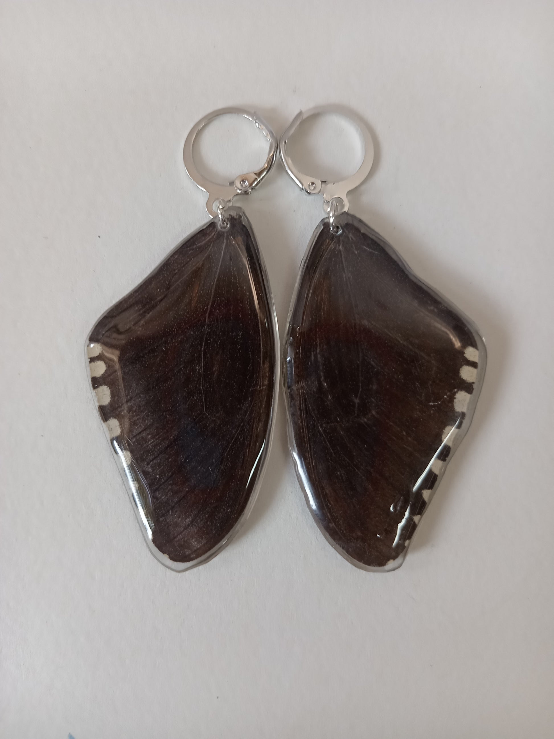 Delicate butterfly wings, ethically sourced and carefully preserved in clear resin, have been transformed into wearable art. The resin preserves and highlights the intricate colors and patterns of the wings, making nature’s intricate details visible up close.