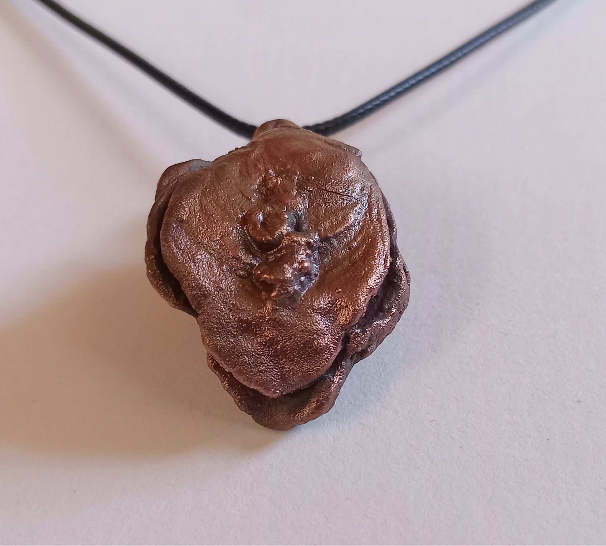 All our electroformed jewelry are made from 100% pure copper. To keep the copper looking as beautiful as possible, you can let it naturally patina, which happens over time, or you can polish your jewelry to keep it shiny. Remove copper jewelry before bathing and swimming.