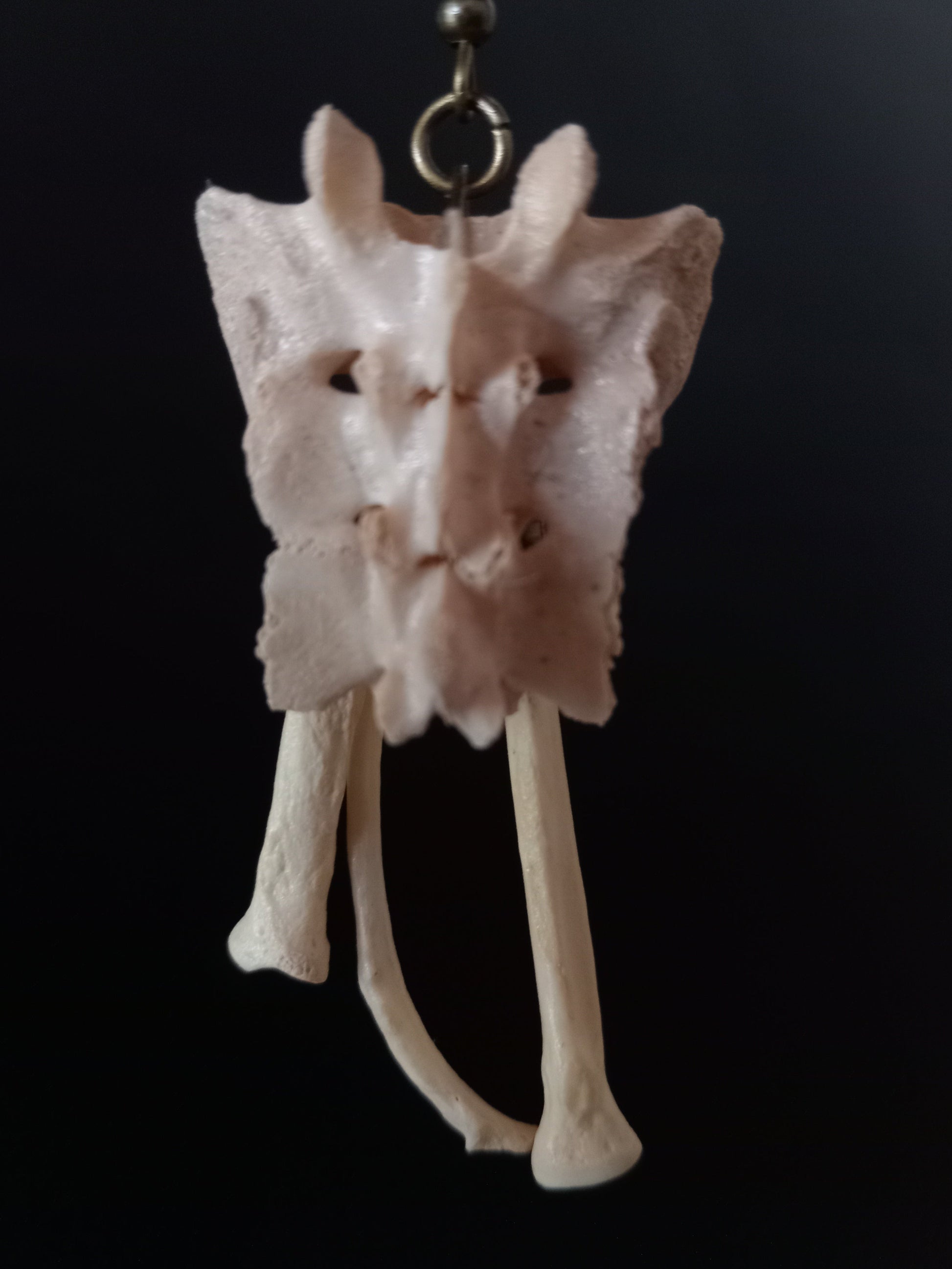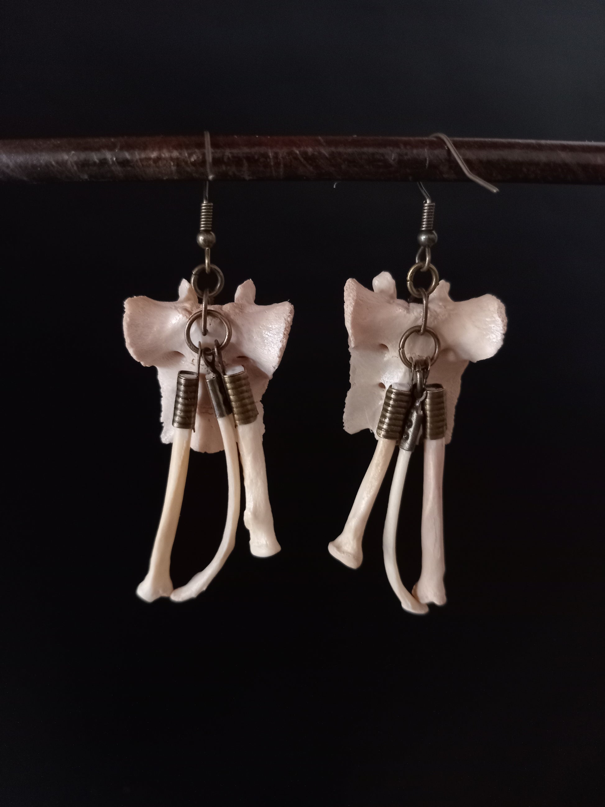 A unique pair of earrings made from real mongoose bones — cleaned, sealed, and crafted into striking natural jewelry. Perfect for those who love bold, nature-inspired designs.