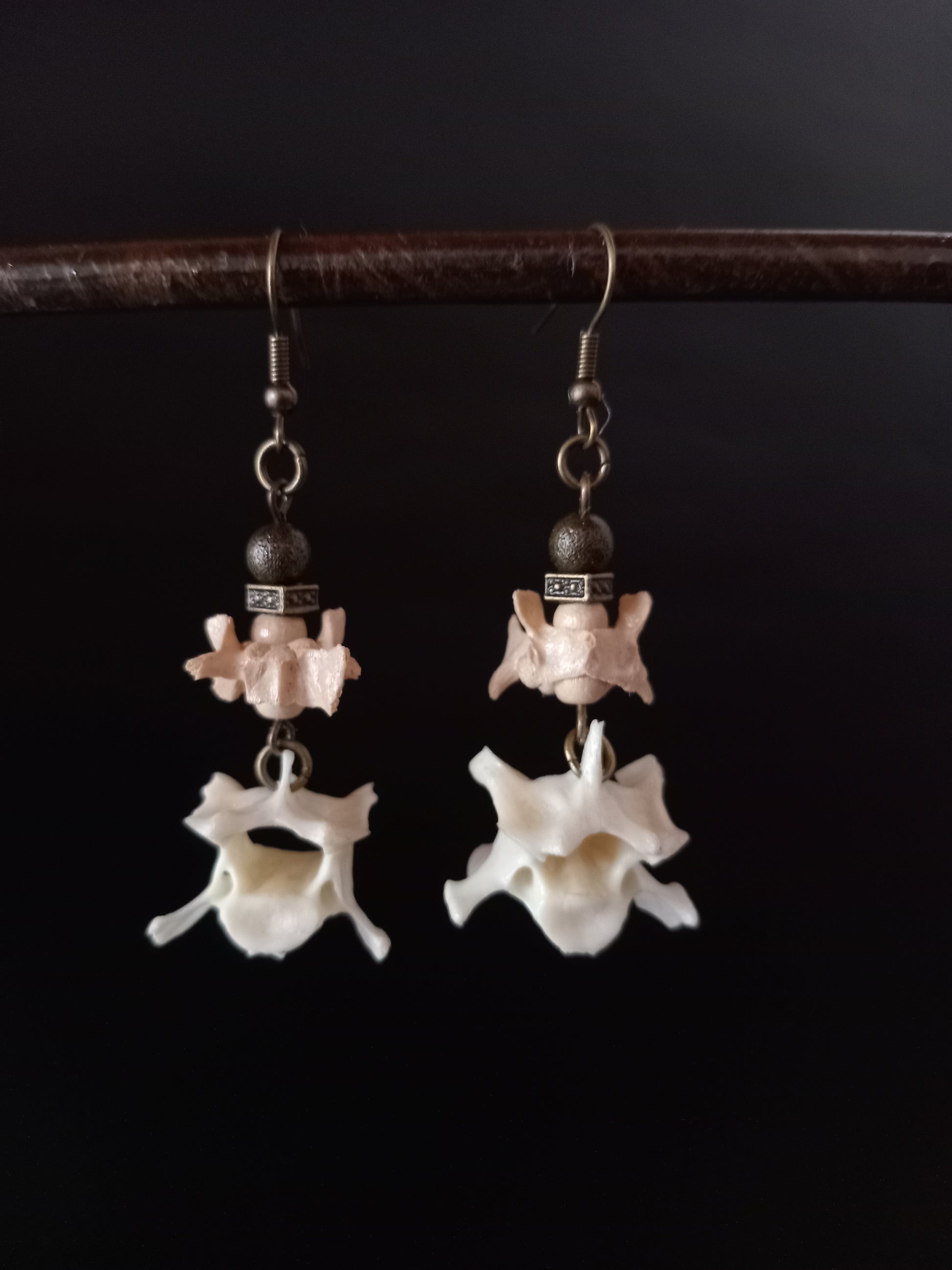 A unique pair of earrings made from real cat and mongoose bones — cleaned, sealed, and crafted into striking natural jewelry. Perfect for those who love bold, nature-inspired designs.