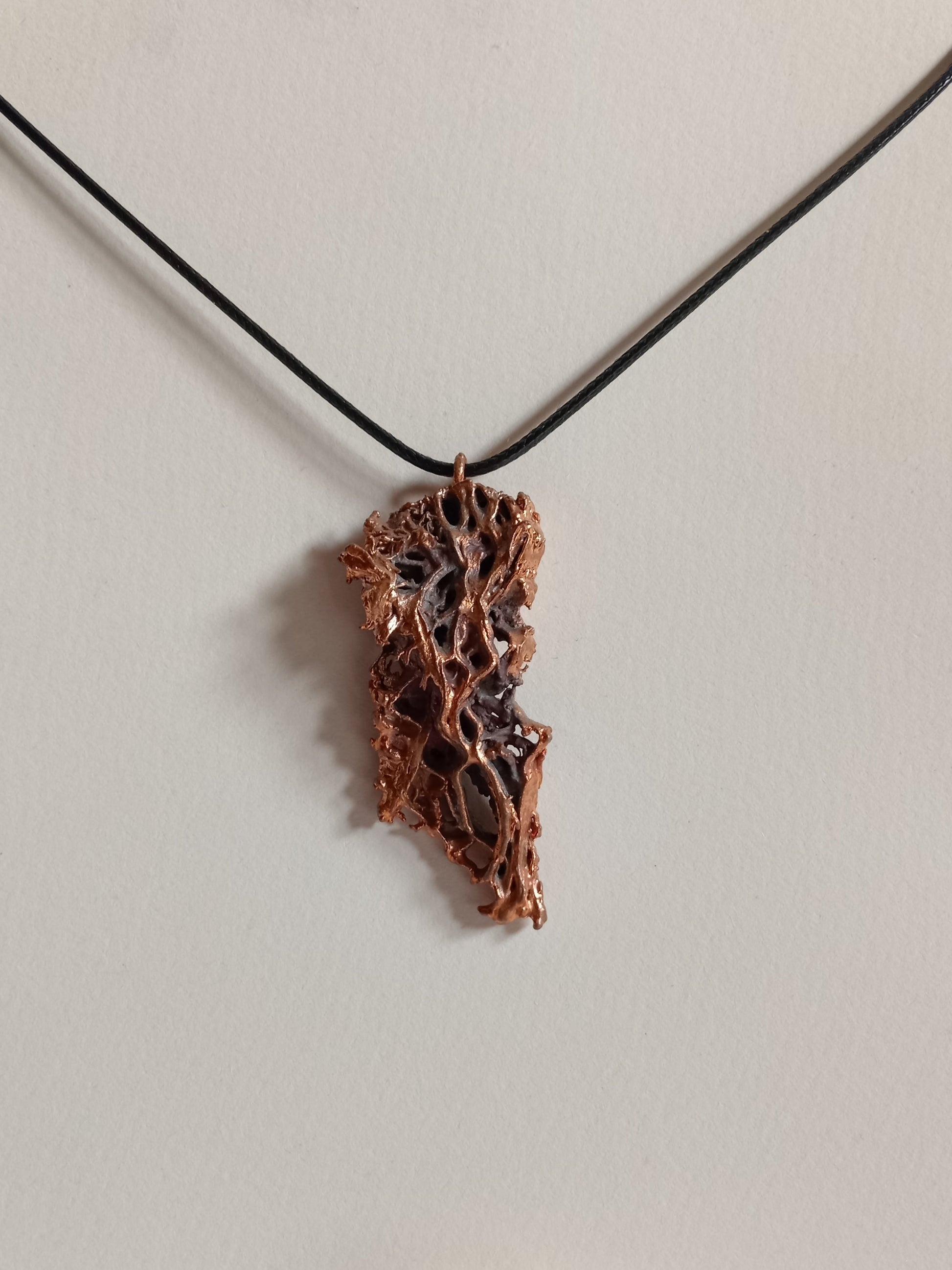All our electroformed jewelry are made from 100% pure copper. To keep the copper looking as beautiful as possible, you can let it naturally patina, which happens over time, or you can polish your jewelry to keep it shiny. Remove copper jewelry before bathing and swimming.